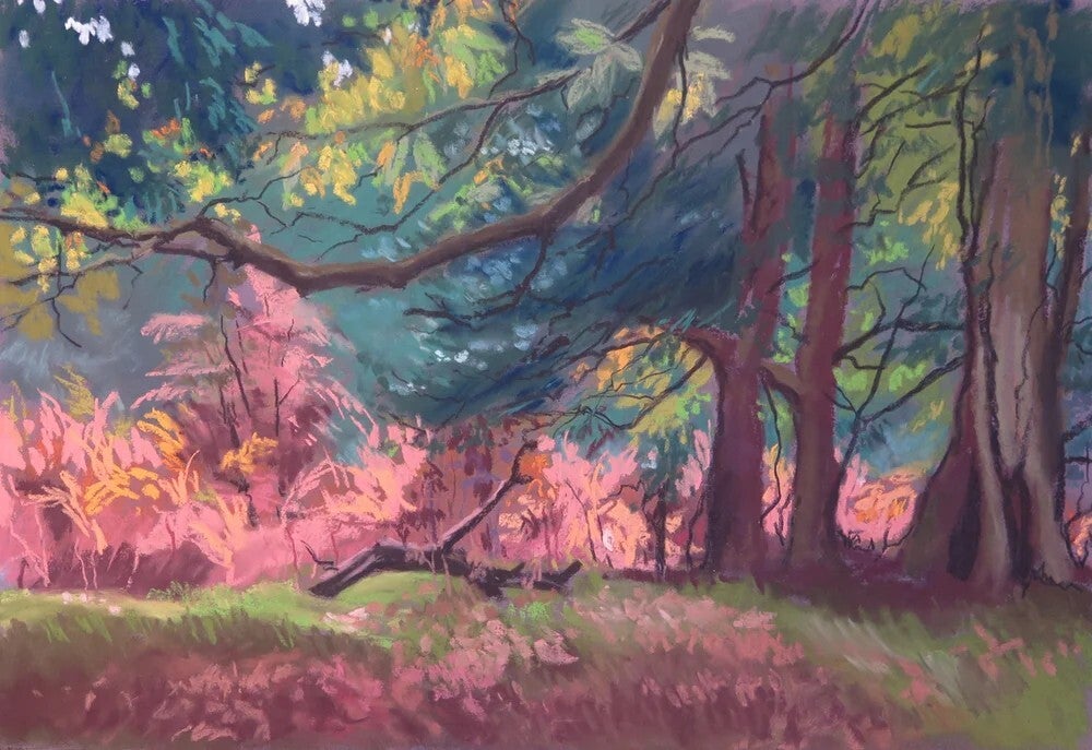 My work is influenced mainly by the landscape of the New Forest and its coastline. It focuses on the interplay of light and the textures and patterns of the natural world. My favourite medium is pastel, allowing me to work quickly and capture the moment.