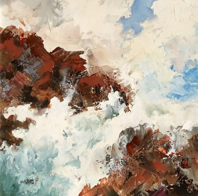 More recently she has been experimenting with oil and cold wax, an exciting and versatile medium, which offers scope for more textural techniques such as layering, scraffito, printing and stencilling and gives the potential for more abstract interpretations.